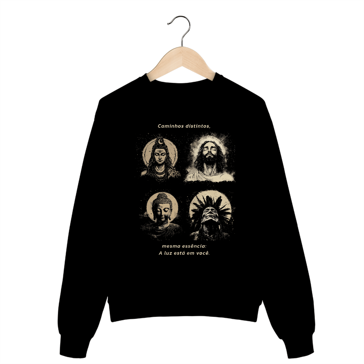 Uma homenagem visual aos grandes mestres espirituais da humanidade: Shiva, Jesus Cristo, Buda e o Pajé da floresta, unidos em uma composição poderosa e serena. Esta estampa não celebra uma religião específica, mas sim o autoconhecimento como caminho universal.