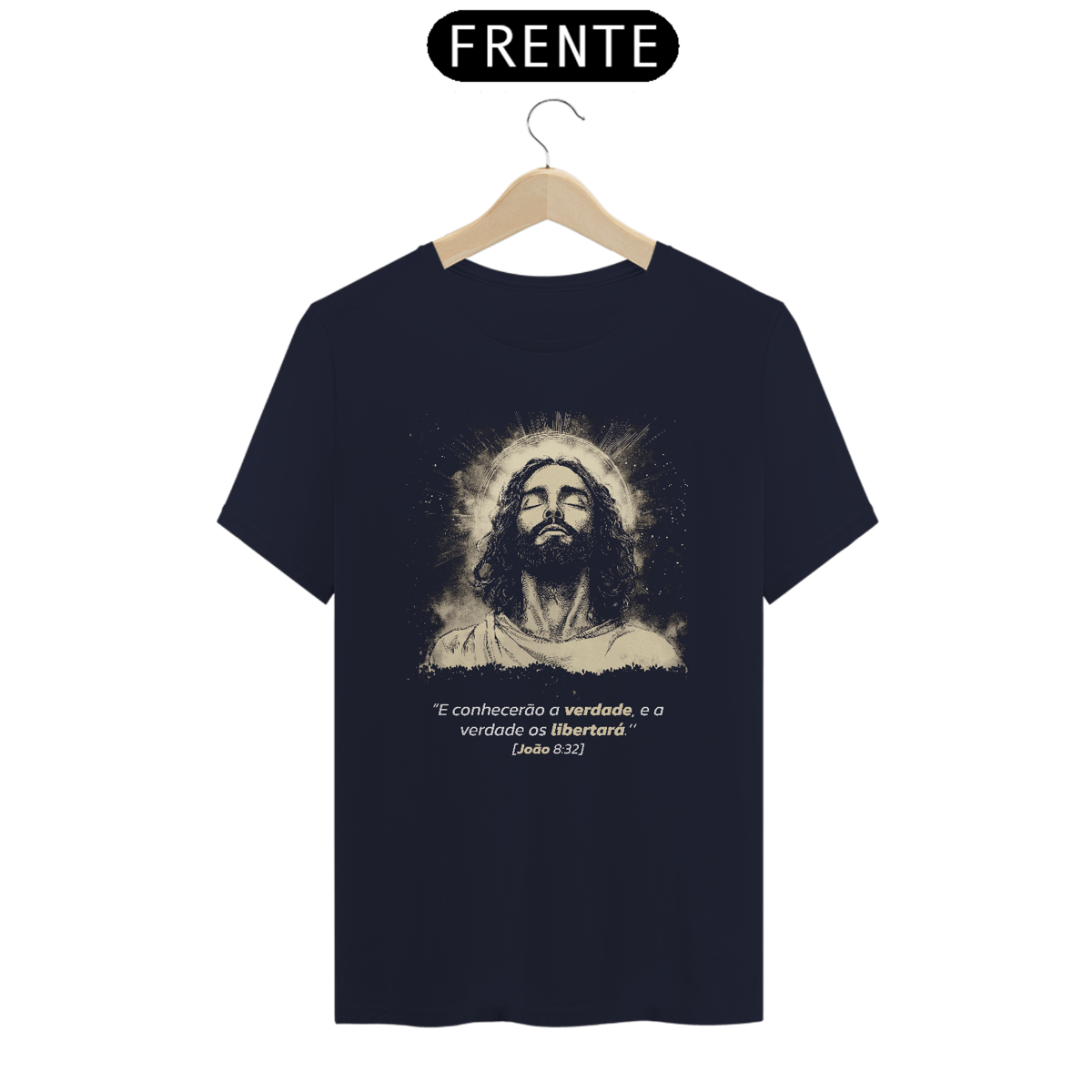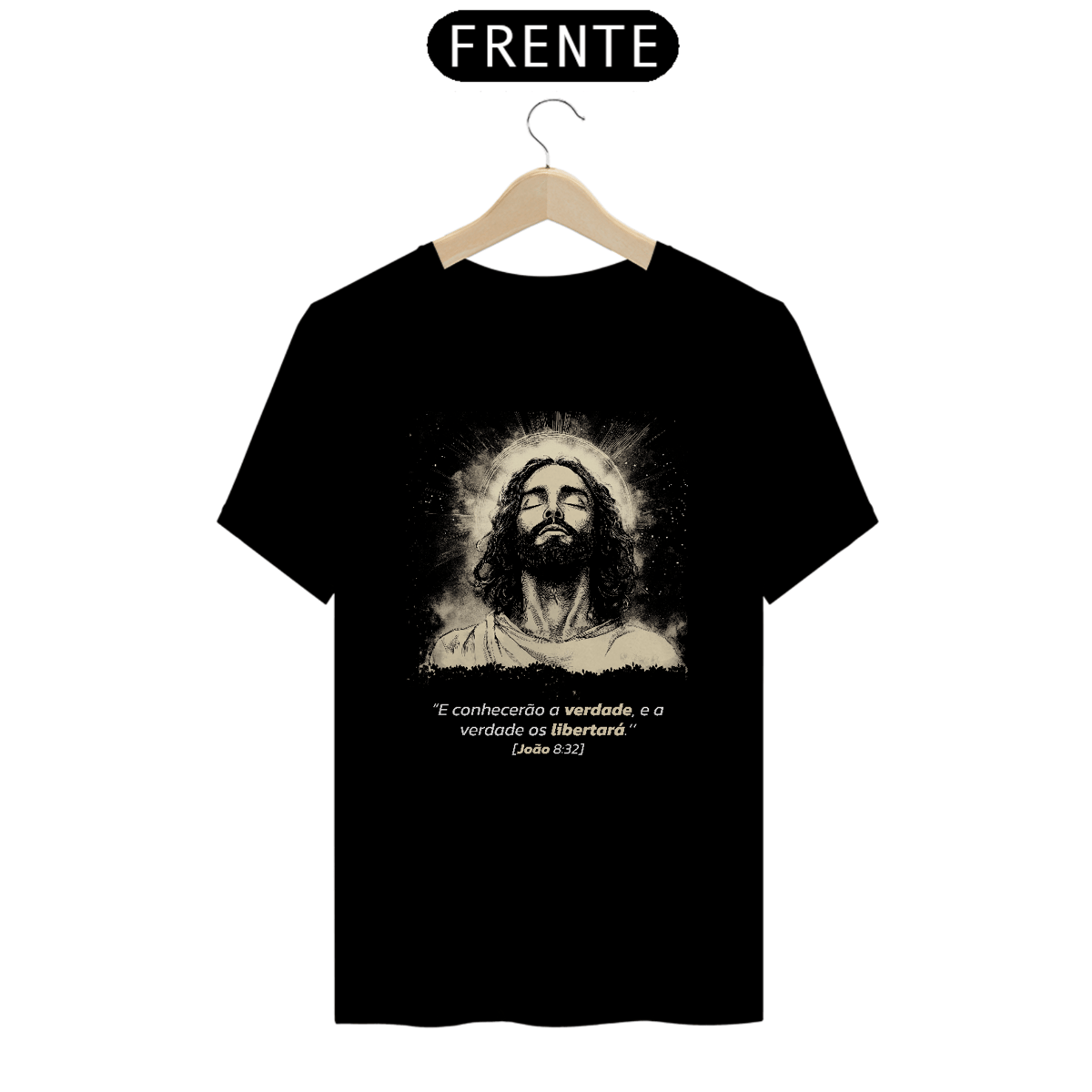 Uma mensagem de e libertação. Esta estampa traz a força da palavra de Jesus, lembrando que o verdadeiro caminho para a liberdade é o conhecimento da verdade. "Conhecereis a verdade e ela os libertará" é um símbolo de espiritualidade, coragem e despertar, perfeito para quem busca viver com autenticidade e propósito.