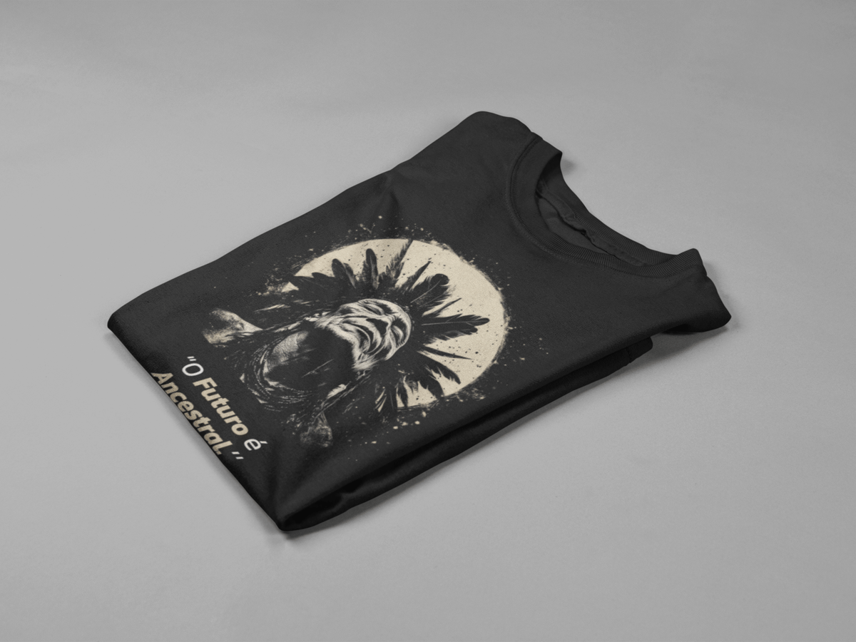 Uma visão profunda que conecta passado, presente e futuro. Esta estampa traz a sabedoria indígena de Ailton Krenak, lembrando que o futuro é construído a partir das raízes, da memória e do respeito à vida. "O futuro é ancestral" é um convite a honrar nossas origens e caminhar com consciência para o amanhã. Ideal para quem valoriza a sabedoria dos povos originários e a conexão com a Terra.
