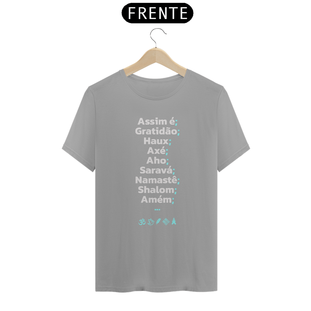 Uma celebração universal das bênçãos, da gratidão e da fé. Esta estampa reúne saudações e palavras sagradas de diferentes culturas e tradições : Assim é, Gratidão, Haux, Axé, Aho, Saravá, Namastê, Shalom, Amém; Em um só propósito: espalhar boas energias, respeito e unidade. Perfeita para quem reconhece a força da espiritualidade em suas muitas formas e carrega no peito a mensagem de paz e conexão.