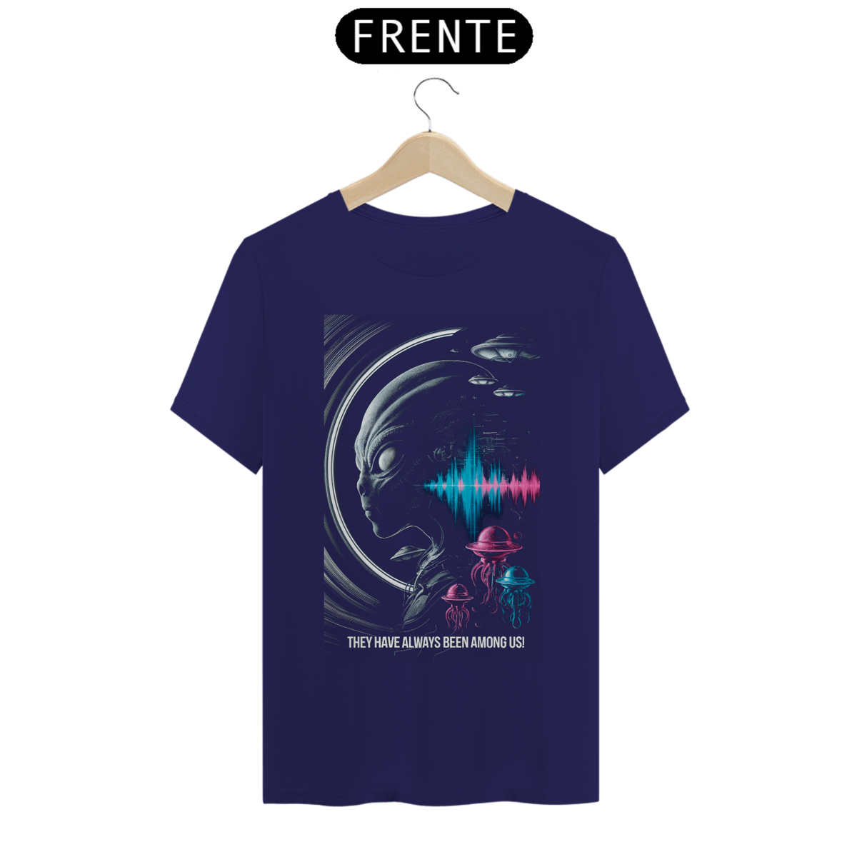 Uma afirmação ousada para mentes abertas e curiosas. "They have always been among us!" carrega a ideia de que seres extraterrestres e multidimensionais já caminham entre nós há muito tempo, além dos limites do que nossos olhos podem ver. Esta estampa é para quem sente a conexão com o mistério do universo e reconhece que a realidade vai muito além do que parece.